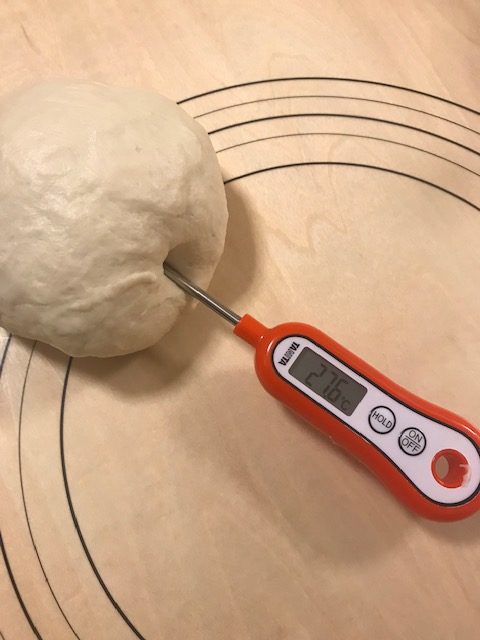 生地温度の計り方は簡単で捏ねあがった生地に温度計を刺せばよいのです!