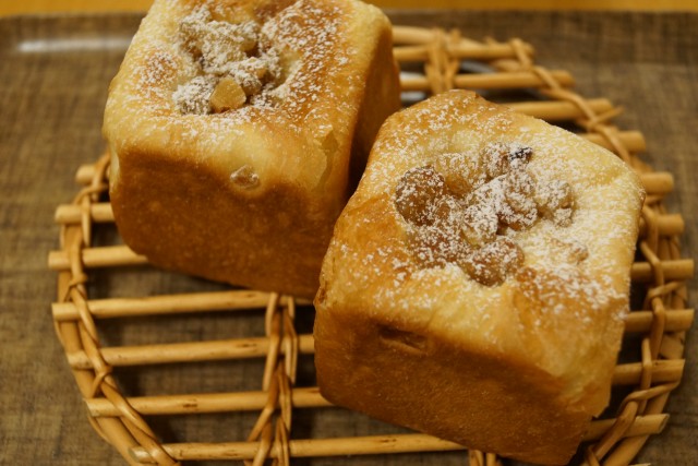 四角いキューブ型に入れてやくクリームパン。中身はカスタードとマロンクリーム。(4個)