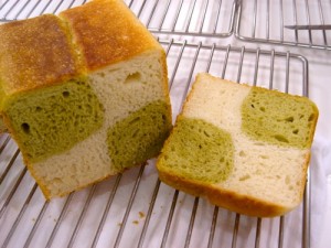 生地を2種作りかわいいチェックの模様に仕上げ食パン型で焼いていきます。(1個)