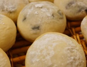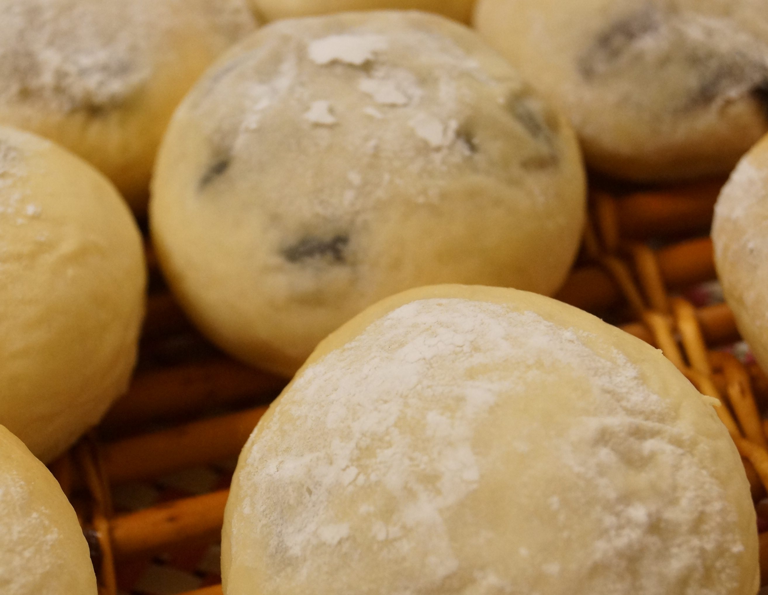 2016年9月のパン 豆大福パン しっとり白パンの生地に黒豆とあんこを包み込み和菓子の豆大福のようなパンになります。お砂糖の代わりにみりんを使うことにより独特のしっとり感ともっちり感がでます ハムコーンパン コーンミール入りの生地にたっぷりのコーンとハムを入れて仕上げます。見た目は小ぶりですが食べ応え充分のパンです クランベリーヨーグルト 生地にヨーグルトを入れているのでほのかな酸味がするパン。ヨーグルトの酸味とクランベリーの甘酸っぱさが相性抜群です バジルチーズ 生のバジルをたっぷり入れて仕上げます。軽い食感でとても食べやすいパン。バジルは旬の葉物野菜に変えて頂いても大丈夫です