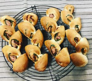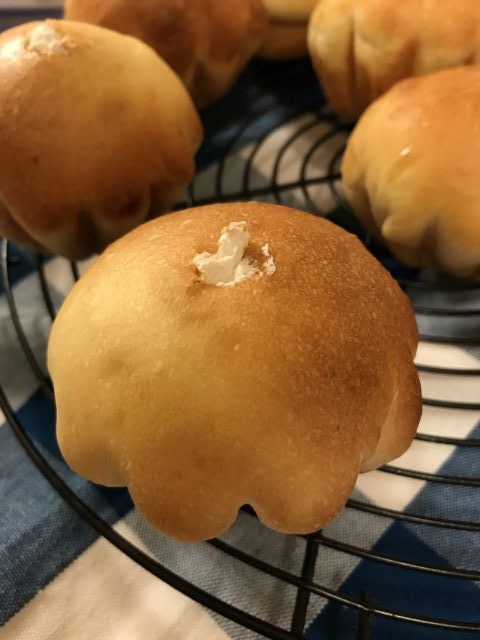 2017年6月のパン 明太エピ 明太子と大葉を包んだ生地をエピの形に仕上げます。表面はカリッとした食感です ホイップあんぱん しっとりなめらかな生地にあんこをいれて焼き、仕上げにホイップを入れます。 パルメザンソフト ソフト!のお名前通りふわふわ食感な生地に粉チーズが溶けて独特の風味です 湯種食パン 小麦粉で作った湯種を生地の中にいれてもっちり食感!くせになる食感です