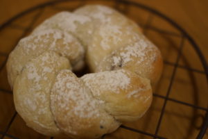 2019年1月のパン 肉まん 皮を作り肉だねを包みこみ蒸篭で蒸すので格別のおいしさです/6個 ハニーカレンズ 生地にはちみつを入れるのでしっとりとした食感。リースのような成形がかわいいおやつパン/3個 トリプルミルクブレッド 3種のミルクを入れて作る、ミルク風味たっぷりのシンプルパンです/2個 クランベリーヨーグルト ヨーグルトの酸味がクランベリーと相性抜群です!ハートの成形も簡単に出来ますよ~/6個