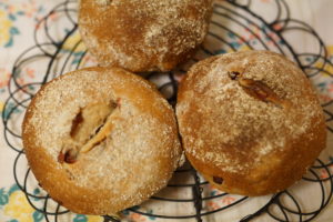 2020年4月のパン クランベリーチーズ 全粒粉とライ麦を入れた生地で少しハード系の生地に。クランベリーとクリームチーズの酸味が相性抜群です よもぎベーグル よもぎを練りこんだ生地でベーグルを仕上げます。今回はかなりふんわりな食感にしました~中身はマロングラッセと甘納豆 ミルクバターロール しっとりミルク風味の生地で定番のロールパンを!ロールパンの成形は難しいので是非チャレンジして習得しましょう! カルツォーネ 包み込みタイプのピザです。具材はトマトソースで簡単にレンジで仕上げます。具材のアレンジもしやすいので覚えて頂くとおススメです