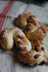 フランスパン専用粉で作る生地にたっぷりの大納言。ねじねじ猫のしっぽで引きのある歯ごたえに