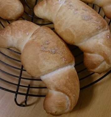 2023年10月のパン ましかく食パン ましかくな型で焼くので市販の食パンサイズになります♪牛乳をいれてしっとり感もありつつふんわりな配合にしました くるみあんフーガス くるみとあんこを包んでフーガスの形に仕上げます。ライ麦をいれて仕上げるハード系のパン 塩パン バターと岩塩を堪能できる塩パン!バターのおいしさ再確認です 玉ねぎパン 生のたまねぎをたっぷり入れてどでかパンを作ります。玉ねぎの甘さがクセになります