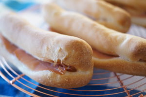 2023年8月のパン クランベリー食パン クランベリーとくるみを入れた食パン。粉を2種類いれてふんわり食感に トマトフォカッチャ コーングリッツ入りの生地で歯切れのよい食感を!夏においしくなるトマトをたっぷり乗せて パインパン 夏らしいフルーツ、パイナップルを乗せて仕上げます。ココナッツを入れて南国風味UP プロシュート 生ハムを包み込んでアクセントにマスタード。夏に合うお惣菜パンです