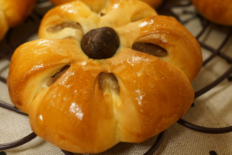 栗入りのあんこを包み込んだ秋にうれしいあんぱんです。あんこが見える成形もかわいいですね