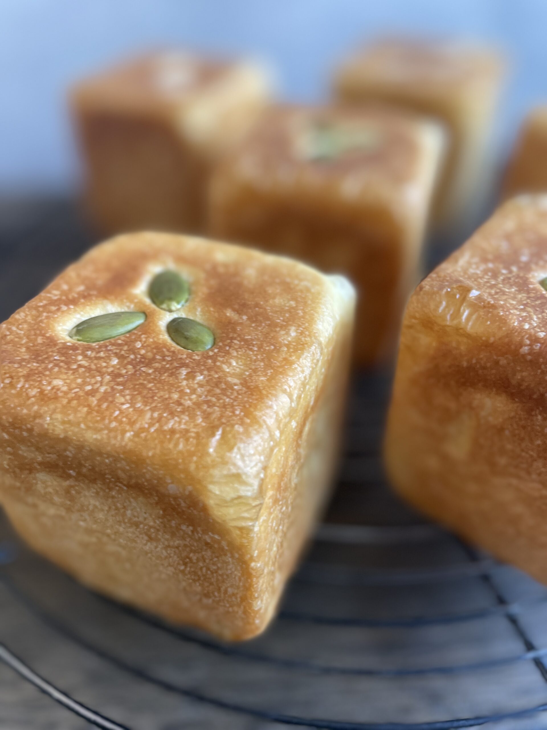 バターを挟んだ生地を重ねてミニ食パン型に仕上げます。生地はふわふわでクセになります