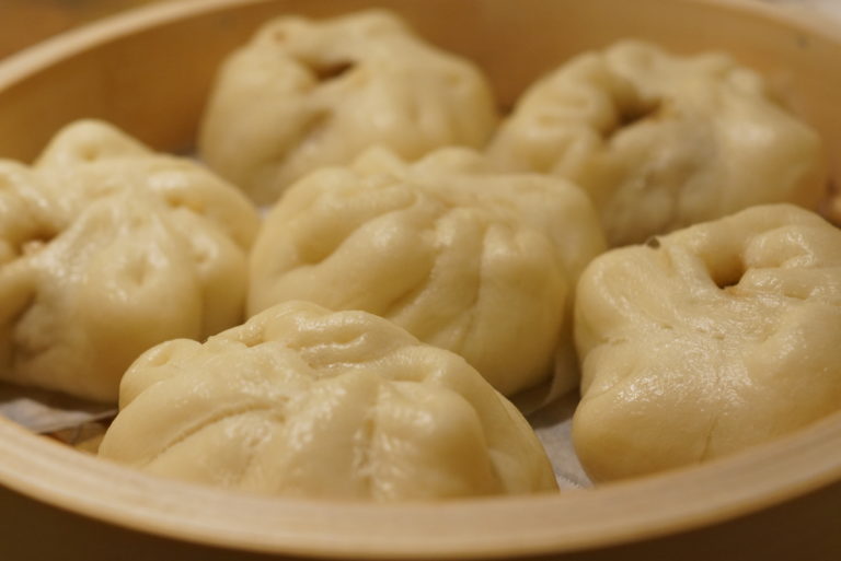 蒸篭で蒸しあげる生地はふっくらもちもちです。中身は肉汁たっぷりです