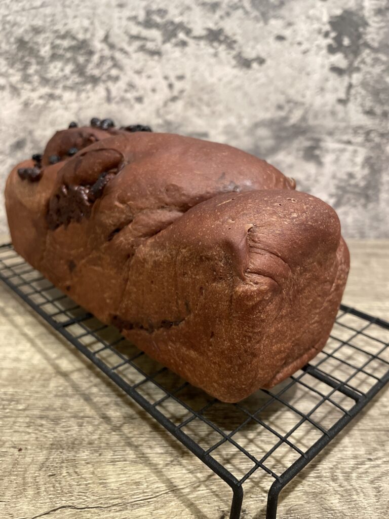 ココア生地にチョコチップとカレンズを包み込んでミニ食パンにしました