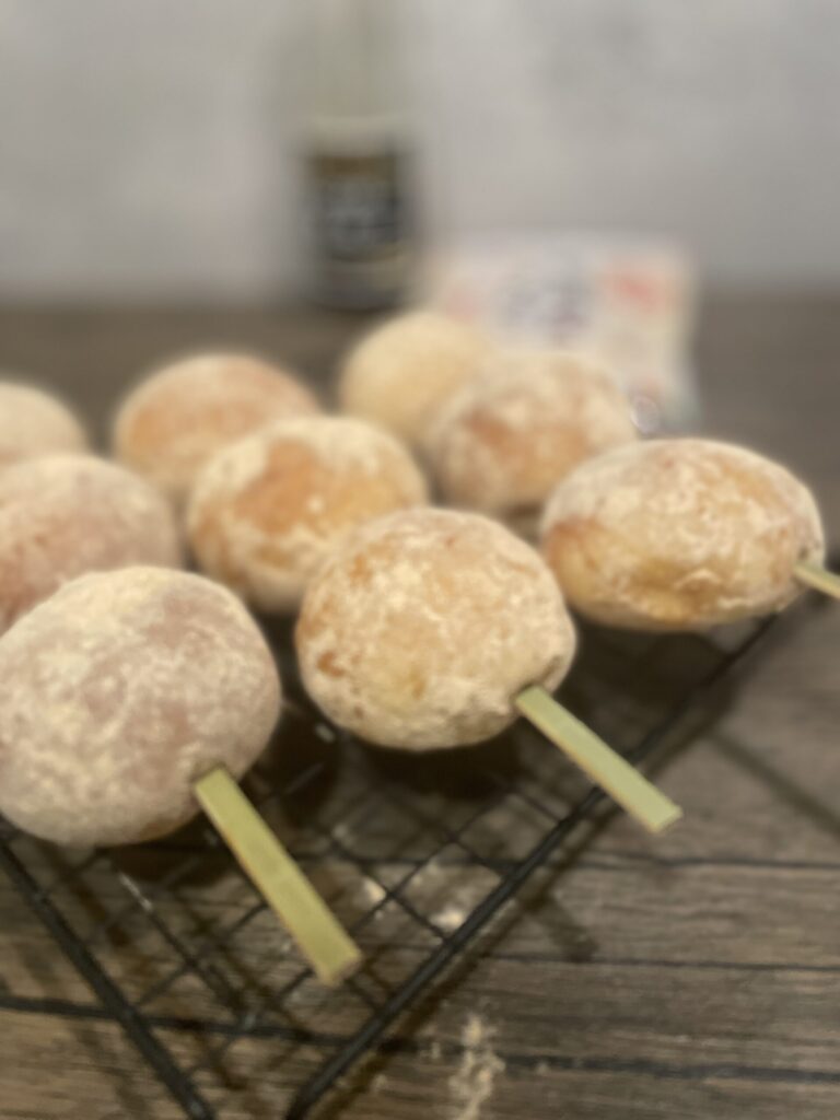 米粉を入れているのでモチっと食感がUpします 黒ごま入りの生地がプチプチ食感もプラス